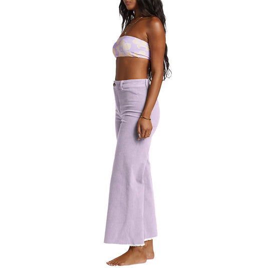 The Billabong Women's Free Fall Wide-Leg Corduroy Pants pair a waist-accentuating high rise with a cool, wide leg. Made with blended corduroy, the Denim collection pant is fitted and flattering through the hips, with button-fly closure, a raw hem, and just enough stretch to keep them all-day comfy.