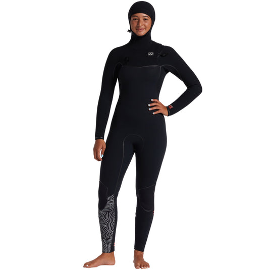 To stay warm and perform your best, you need a wetsuit that's lightweight, super flexible, and built to handle the action. The Billabong 5/4 Women's Furnace Comp Series Hooded Chest Zip Full Wetsuit rises to the challenge with AIRLITE 4D exterior, a SMART foam core, and a technical Graphene interior. Reinforced with Super-flex taped seams.