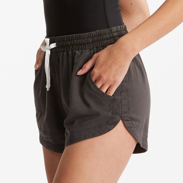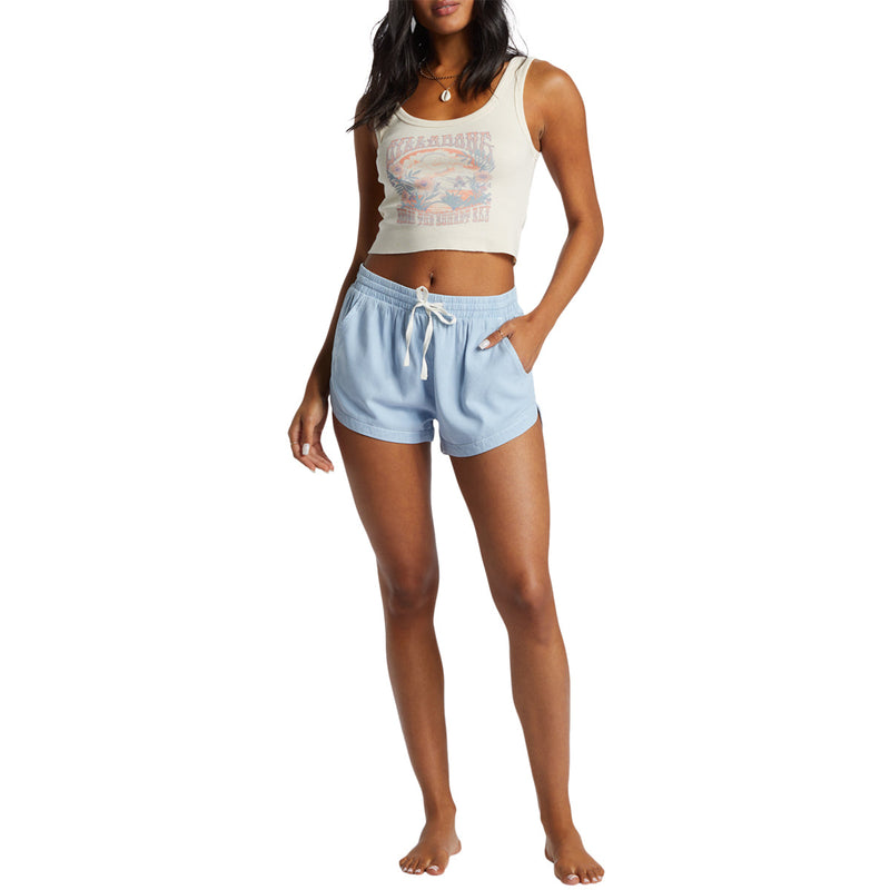The Billabong Women's Road Trippin' Elastic Waist Shorts are relaxed cotton/viscose twill shorts with an elastic waist and drawcord. Featuring a regular fit with side pockets, these breathable and soft shorts are perfect for casual days, traveling or the beach.