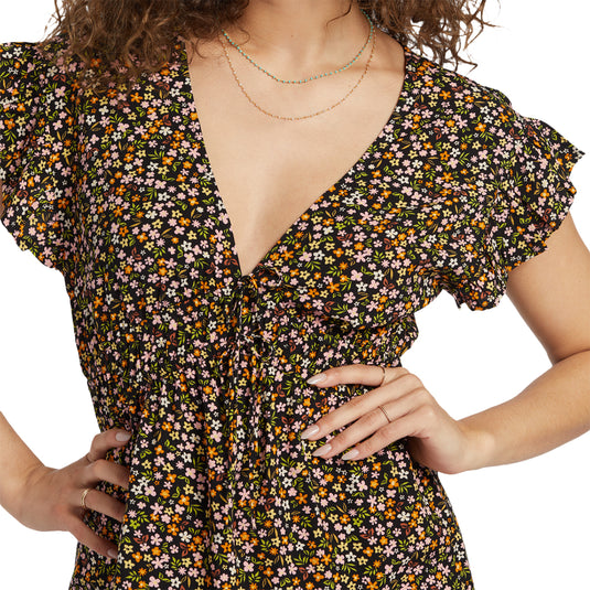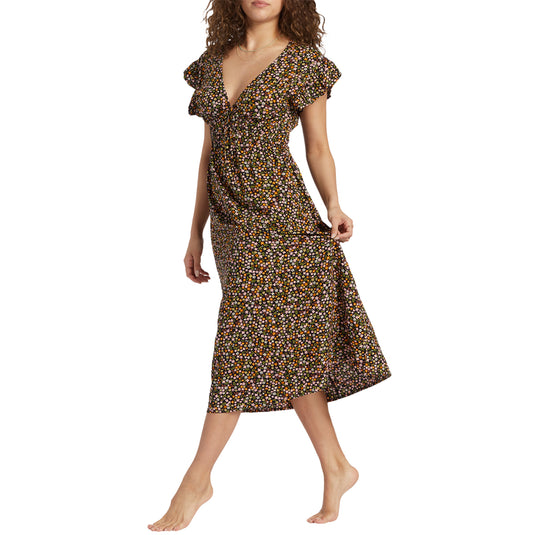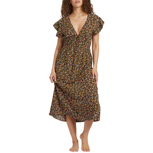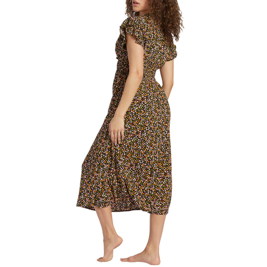 Airy and floral, the Billabong Women's Picnic Date Midi Dress has flutter sleeves, a deep V-neck, and fixed ties at the waistline to define your shape. A perfect look for your next romantic rendezvous.
