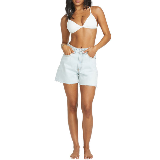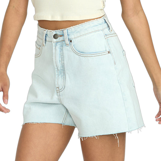 A staple that lives on year after year, these cut-off Billabong Women's Riley Denim Shorts just gets better with age. In classic 90s Mom jeans fashion, we've said buh-bye to the belly button and hello to the booty with a vintage-inspired mid rise fit. Featuring a mid-thigh length, frayed hem detail, and a love-worn, broken-in finish.