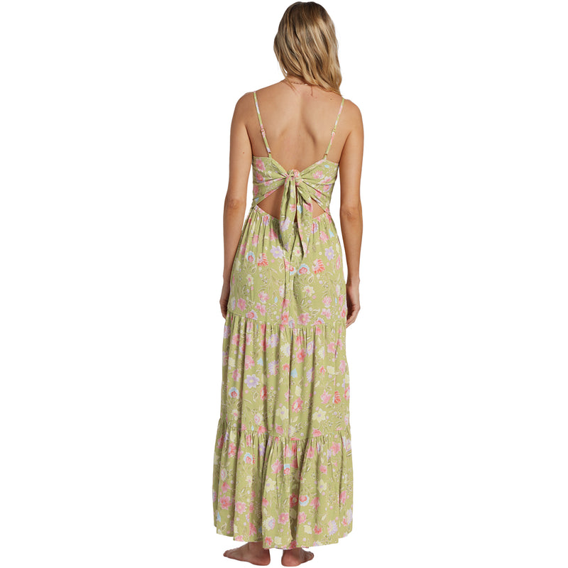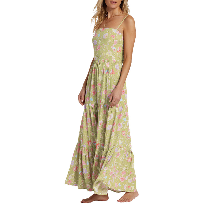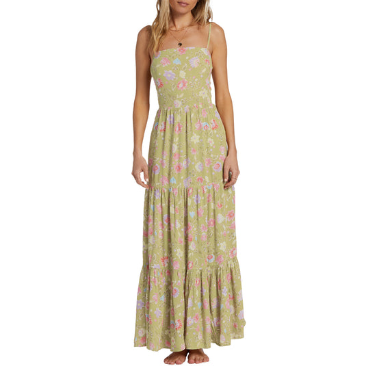 Crafted from a crinkle viscose fabric, the Billabong Women's Riviera Romance Dress has fitted bodice with a straight neckline and easy skirt fit to create a flattering silhouette.