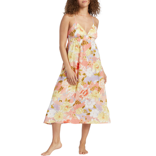 Return To Paradise collection, this Women's Sunset Skies Midi Dress features a v-neckline and elastic at the waist with smocking on back bodice for a flattering yet comfortable fit.