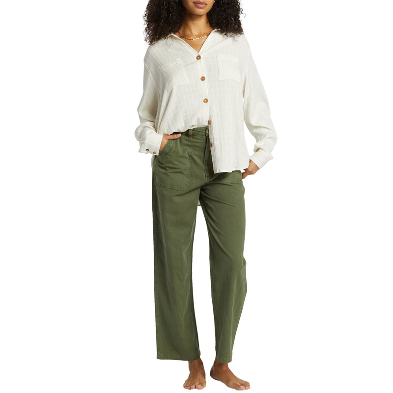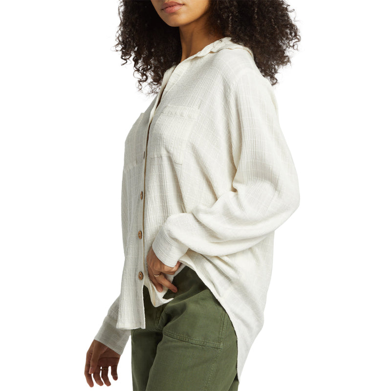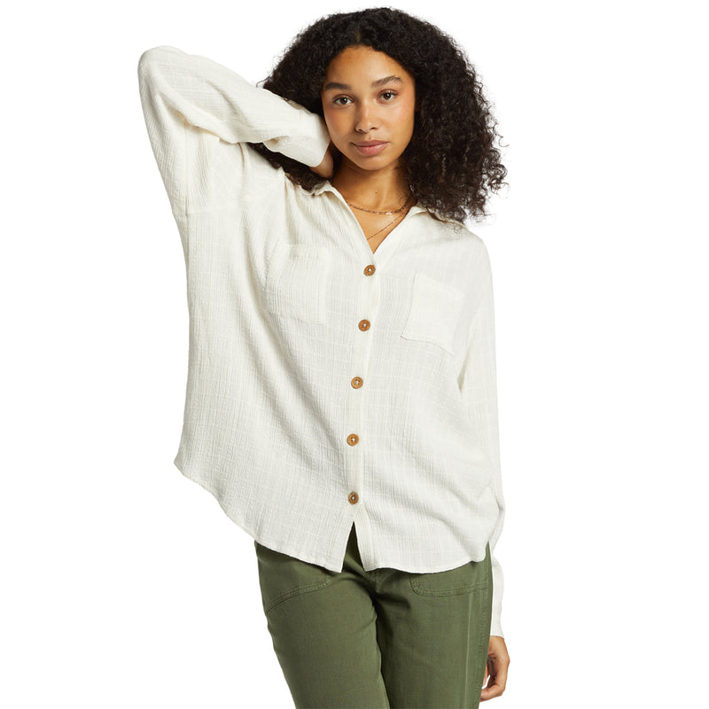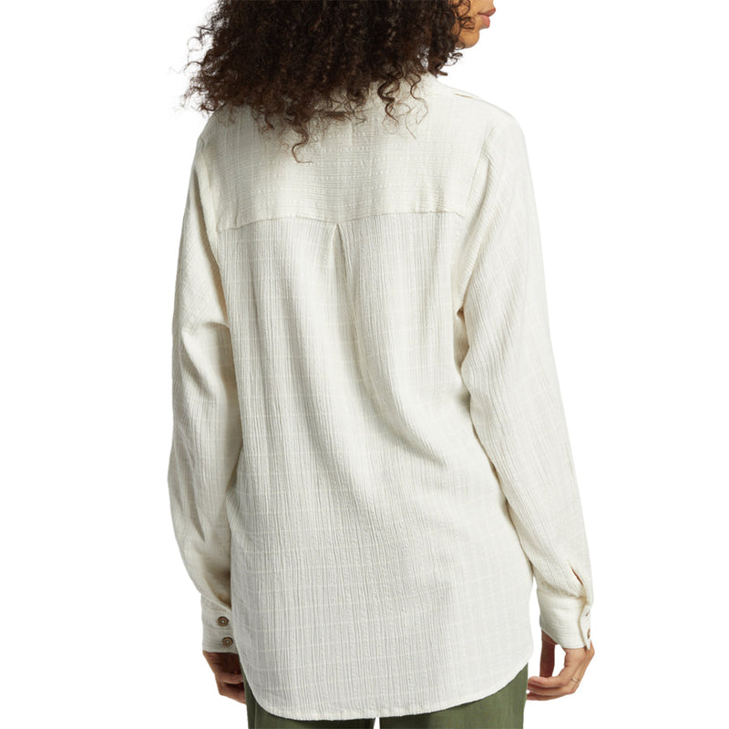 Swell style, fresh and light like the ocean breeze. The Billabong Women's Swell Long Sleeve Button-Up Shirt features chest patch pockets, button-up closure, and a collar for a breezy, effortless look. Made from viscose cotton crinkle check fabric with an oversized fit for comfort and style.
