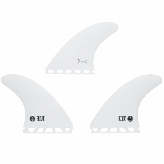 When designing his fin set, Wade Goodall wanted a simple graphic that looked good in every board a nod to the glass-on era of fins. He also wanted a template that held true through turns but has release when you want it. The larger side fins combine with a Smaller trailer so there's no need to switch between sizes and is also good for all types of boards including shortboards, fish, and step-ups. "I wanted a fin that held true on rail, but still had an easily accessible release point, hence the larger side fins and slightly Smaller trailer. This is a really versatile set which means more fun all around!"