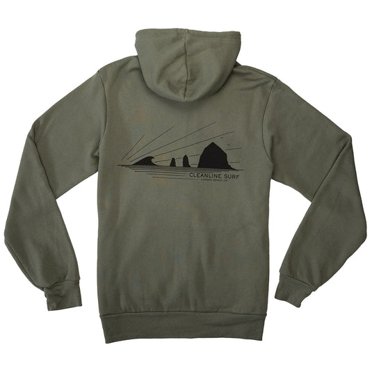 Our Haystack Rays Zip Hoodie features the gem of the north coast of Oregon, Haystack Rock in Cannon Beach. Your new everyday hoodie is perfect for layering under a denim jacket or over your favorite tee. Artwork designed by local talent, Dallas Pattie.