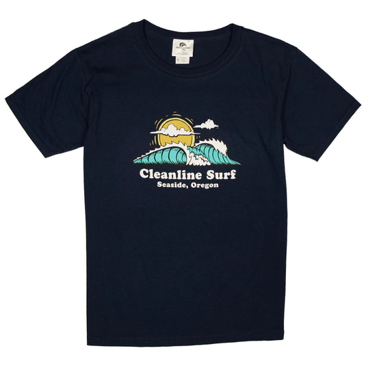 Your Grom will be super stoked to kick it out in this Cleanline Sunset Tube soft T-shirt. Featuring two options with Cannon Beach or Seaside locations placed underneath the sun shining through a perfect barrel. SO PITTED!