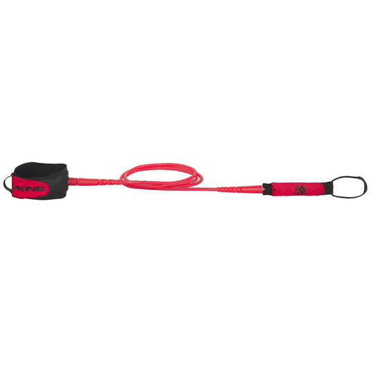 A six-foot surf leash with state-of-the-art strength and fit for surfing peaks up to a couple feet overhead. Dakine was founded on designing a better surf leash. The Kaimana surf leash builds on Dakine's surf leash legacy with increased durability, comfort and performance. Designed for surfing peaks up to a couple feet overhead, it uses 1/4-inch (6.5mm) Dura-Cord that's refined for reduced drag without compromising on strength. The low-profile ankle cuff conforms to the shape of your ankle for a zero-distraction fit.