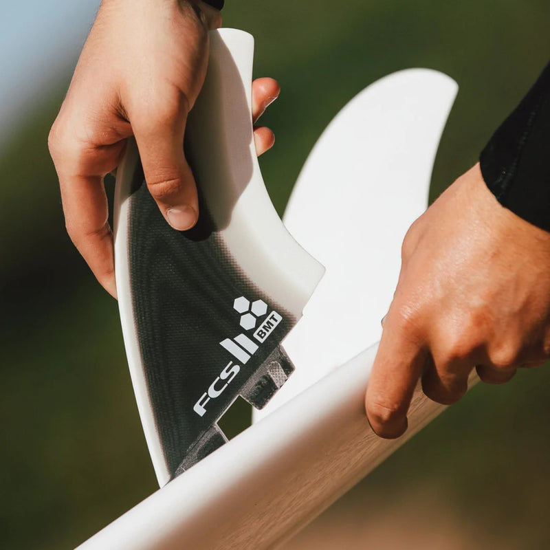 Bridging the gap between the CI Keel and AM Twin - this high area twin fin provides the drive and hold you expect from a keel, with the pivot and release found in the upright AM twin template. Placing it's self in the middle of the CI family, the BM template has a swept back long leading edge that leads into a full rounded tip. Different from other twin templates, this fin is designed to feel secure when laying into a longer turn or driving hard off the bottom. With the CI Twin Pin/CI Mid in mind, the idea was to help anchor the tail to the wave face so surfers could take a more aggressive approach to riding a twin fin. Designed to fit the FCS II Fin System and recommended for all board types including fish, funboard and twin fin boards.