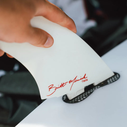 "A twin fin that you can push harder, turn tighter, and surf more vertically." Britt Merrick