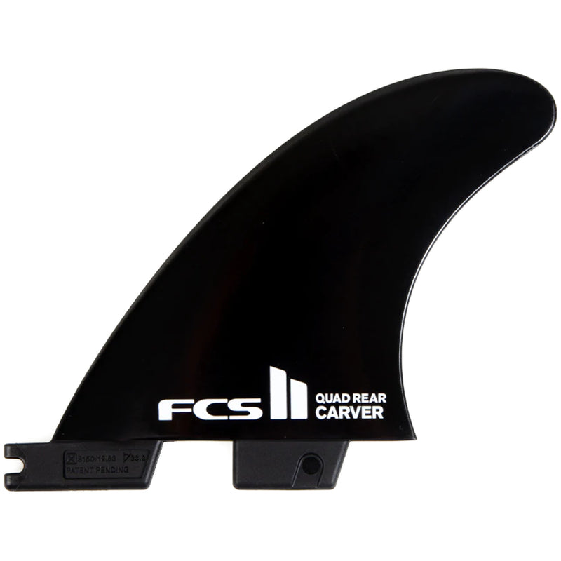 The FCS II Carver GF Quad Rear Fin Set has elongated fins with high degree of sweep which provides exceptional hold off the bottom and when carving on the open face as well as powerful, drawn-out arc turns with added hold. Engineered foils are designed to complement each fin template so the flex is activated in the correct location on the fin, at the ideal moment on a wave. They are ideal for power surfers who like to push hard against their fins and draw out their turns.