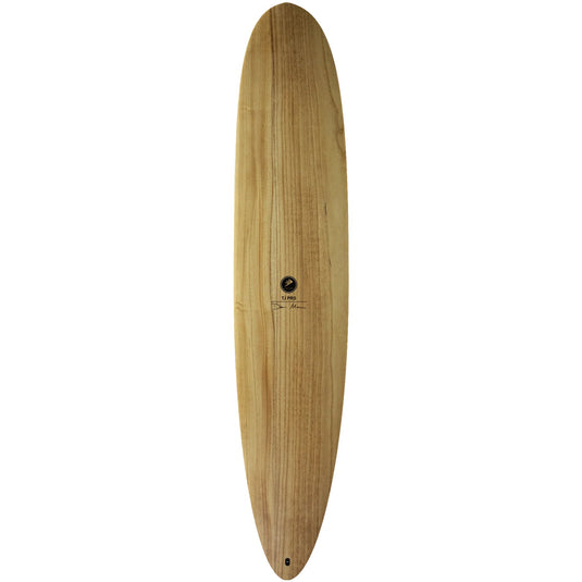 Taylor and Dan Mann developed the Taylor Jensen Series TJ Pro Helium Timbertek Surfboard with slightly more aggressive bottom contours and a touch more kick in the tail than the stock 900R. The TJP will go vertical while still maximizing the fun of cruising on a longer board. This is Taylor Jensen's go-to board for competition, and has taken him to 1x ASP and 2x WSL World Longboard Championships.