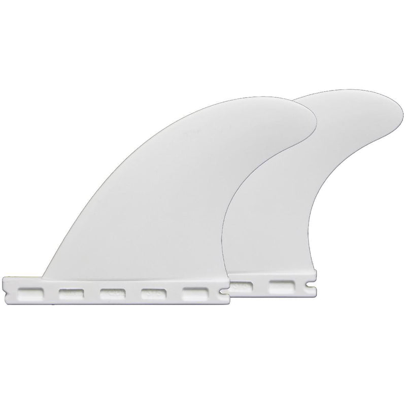 The Futures Fins QD2 Thermotech Quad Rears Fin Set with the 1/2" box for quad setups. These are the 2 rear trailer fins of a quad set that can be combined with the side fins from your thruster set or another quad set to create endless combinations of fin configurations. Start experimenting! The White Composite (Thermotech) fins have a consistent flex that hold great on the bottom, and then release through turns.