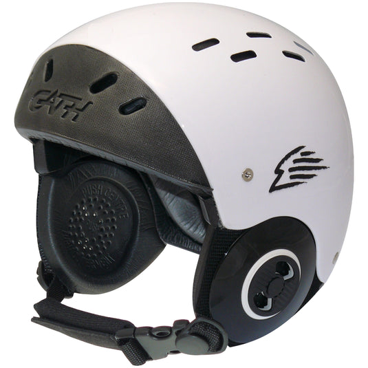 The Gath Surf Convertible Helmet (SFC) is based off the original Gath Pro Surf Helmet, but with the addition of removable ears. This accomplishes a couple things. 1st The ears are removable for those who don’t like to have their ears covered can take them off, and also the ear pieces are more flexible than the original full shell design so it can fit people with wider jaw lines more easily which makes fitting the helmet easier.