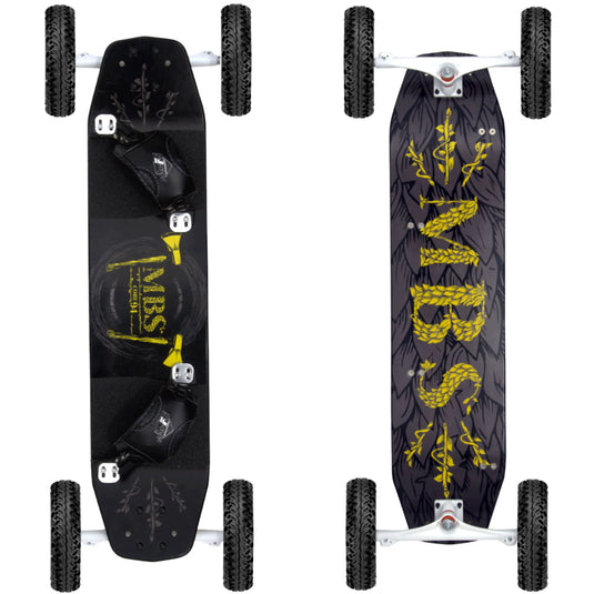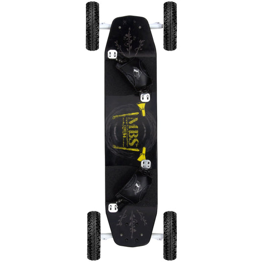Cruise with confidence and style on the MBS Core 94 Mountainboard. An ideal choice for kiters and mountainboarders who don't want their riding potential to be limited by the cash in their wallet. MBS has launched this year's Core 94 into a whole new league with a few critical upgrades, the most obvious of which is the advancement from F2 Velcro binding to MBS' new F5 ratchet bindings. This is first Core board to ever come stock with any ratchet binding, let alone bindings as strong, comfortable, and adjustable as the new F5. But it's the hidden upgrade from 9.5mm to 12mm axles that really transforms this board into one even advanced riders can take seriously. With the chance of bending an axle reduced to nil the Core 94 is ready to throw down in a way its predecessors only dreamed of. MBS' Core 94 is the ideal choice for kiters and mountainboarders who don't want their riding potential to be limited by the cash in their wallet.