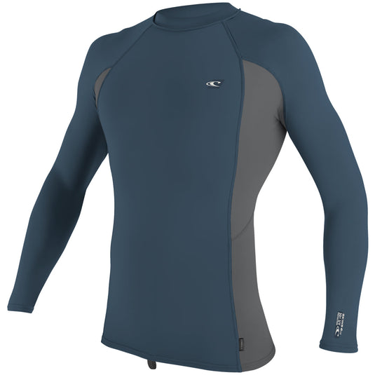 The O'Neill Premium Skins Long Sleeve Rash Guard is 50+ U.P.F. and it is the pinnacle in quality, wearable sun protection. Ergonomic seam placement, 4-way stretch and quick-dry properties provide exceptionally soft feel and comfort.