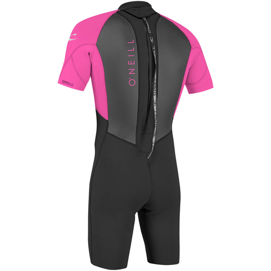 In the surf or on the shore, the O'Neill Youth Reactor II Short Sleeve Back Zip Spring Wetsuit provides comfortable protection from the elements in warm water. Built with durable UltraFlex DS Neoprene and breathable flatloc stitching, this entry level spring suit is an affordable option for kids, tweens and teens. A back zipper means easy off and on while the fully adjustable super seal neck secures everything for a great fit. With colorful options, performance technology and an incredible price, the Reactor delivers smiles all summer long.