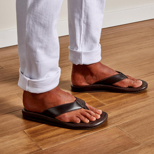 The OluKai ‘Ilikai Sandals are the ultimate high-support leather sandal with kapa-inspired chevron artwork that’s equal parts island character and modern depth. Designed with a soft, curved line that mimics a calm ocean surface, ‘Ilikai is the handsome, full-grain leather sandal you’ve been searching for. Made for the beach, not the ocean—prolonged contact with water may cause damage.