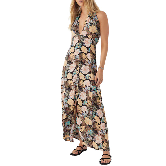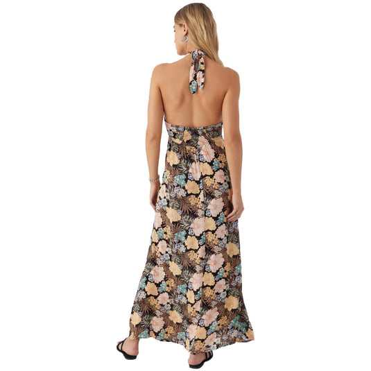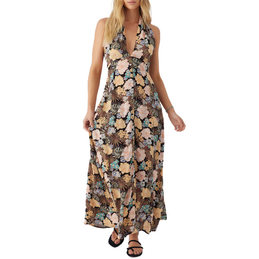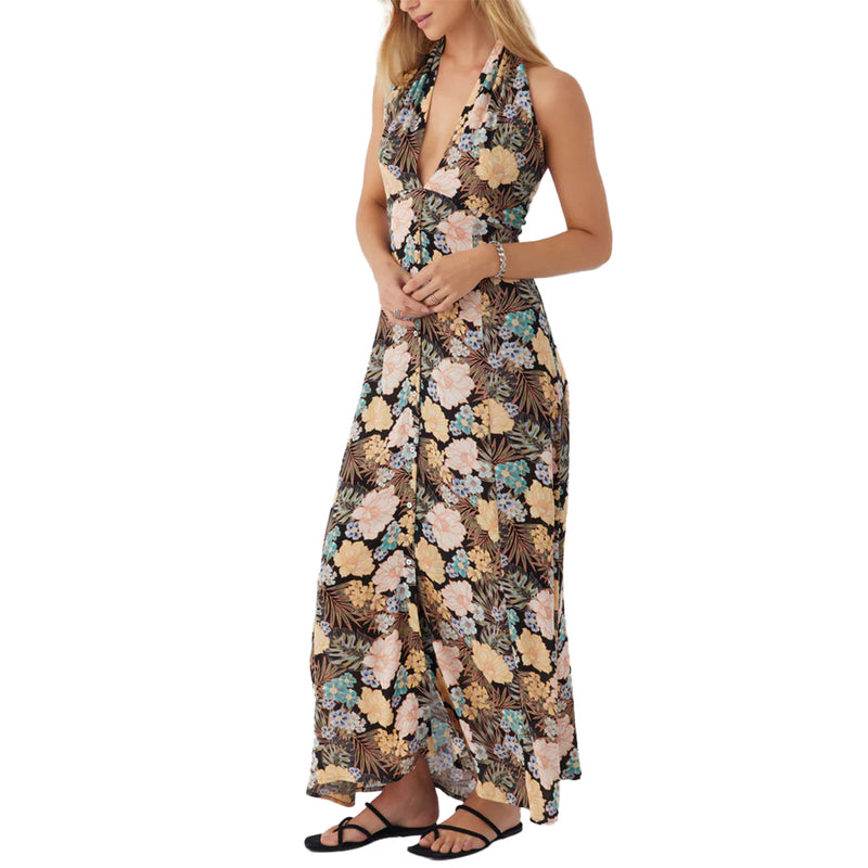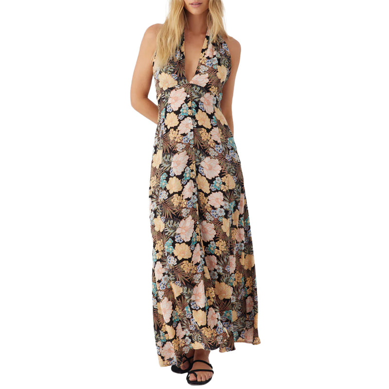 The effortlessly stylish O'Neill Women's Jemma Macaw Maxi Dress, has a halter top design, front button closure and allover print.