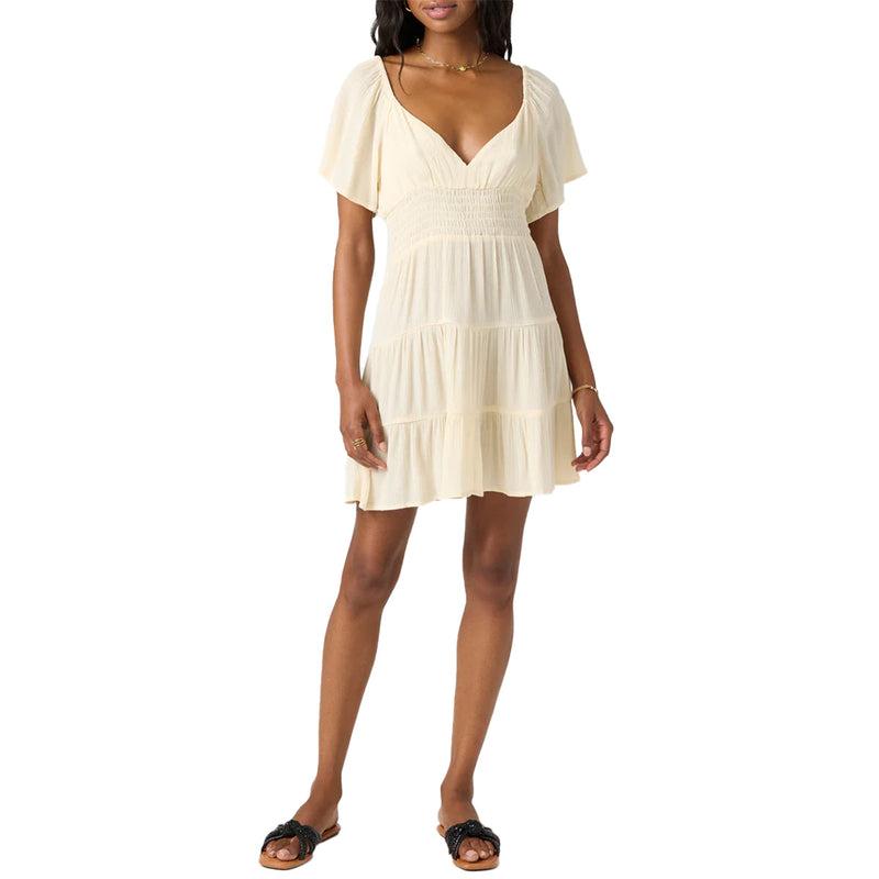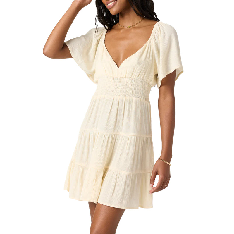 This light and flowy O'Neill Women's Layken Solid Mini Dress features a tiered body design, v-neckline and flutter sleeve detail.