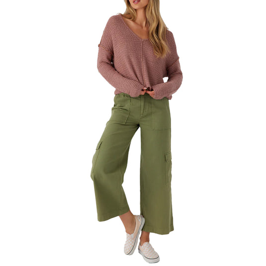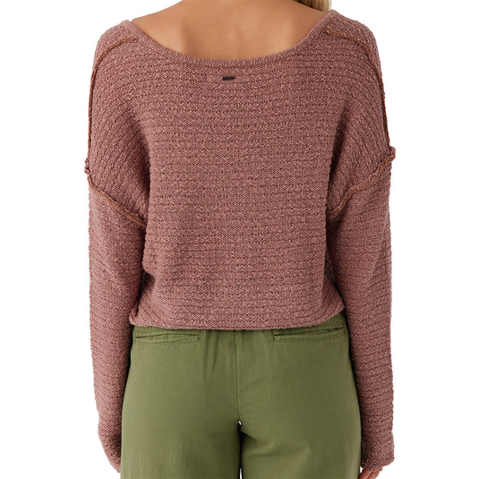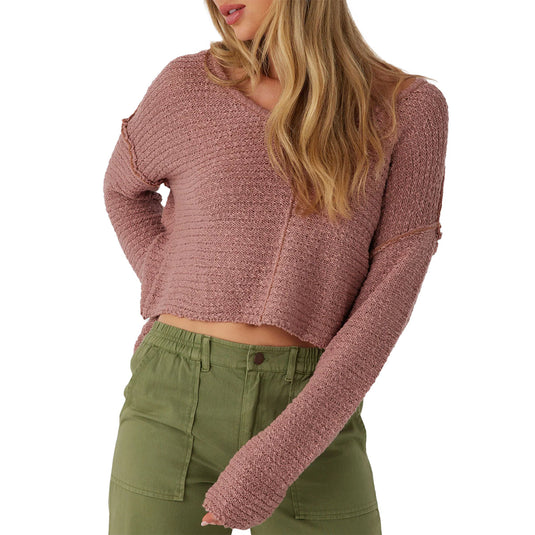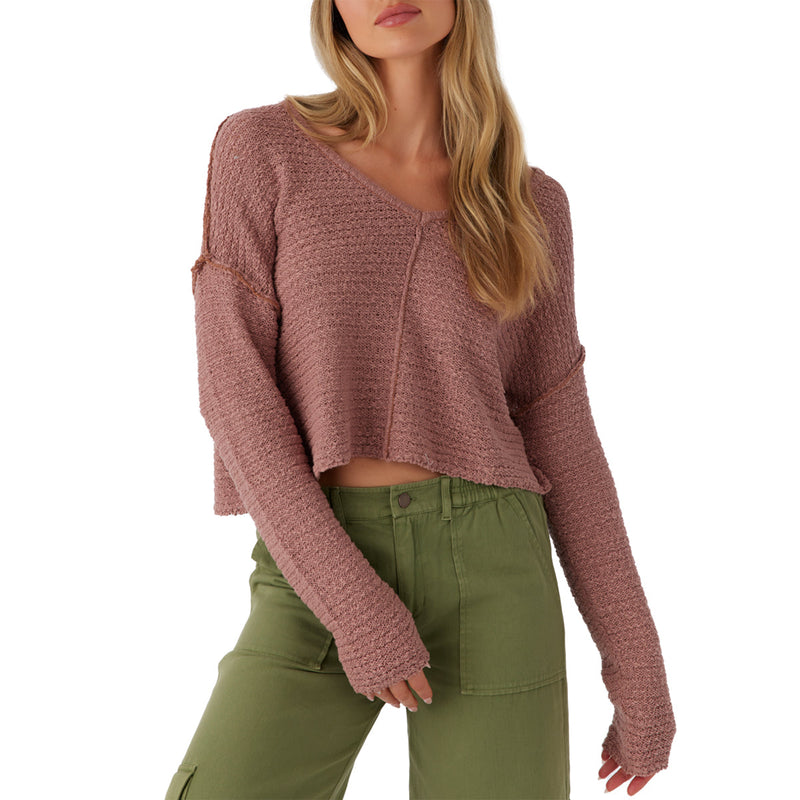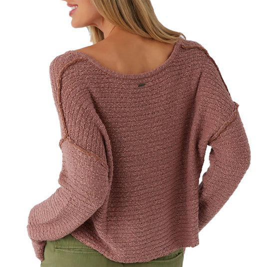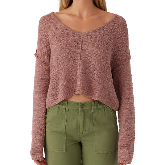 The essential O'Neill Women's Marina V-Neck Sweater has a comfy drop shoulder fit and exposed seam detail at the front.