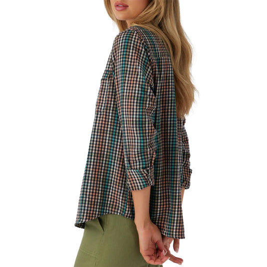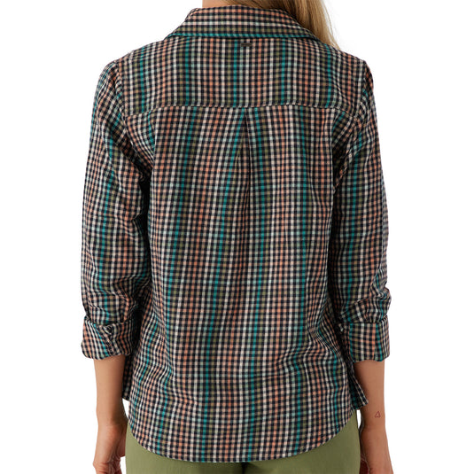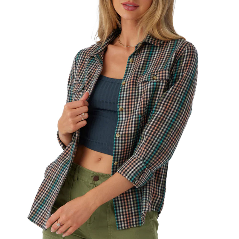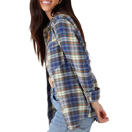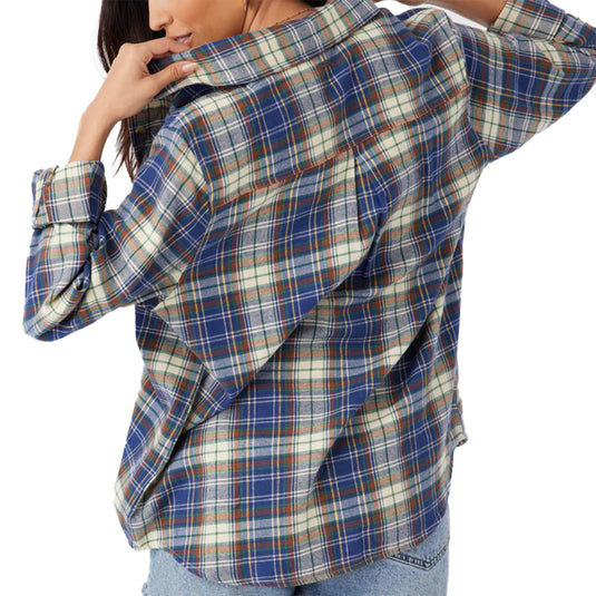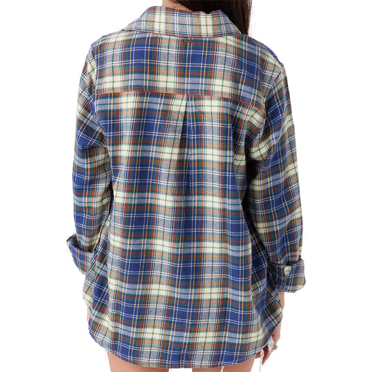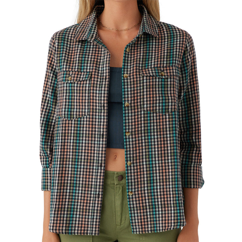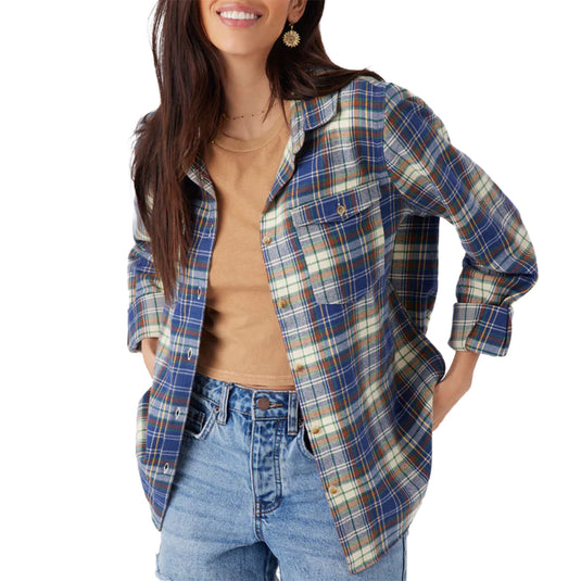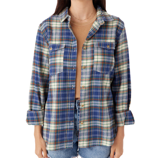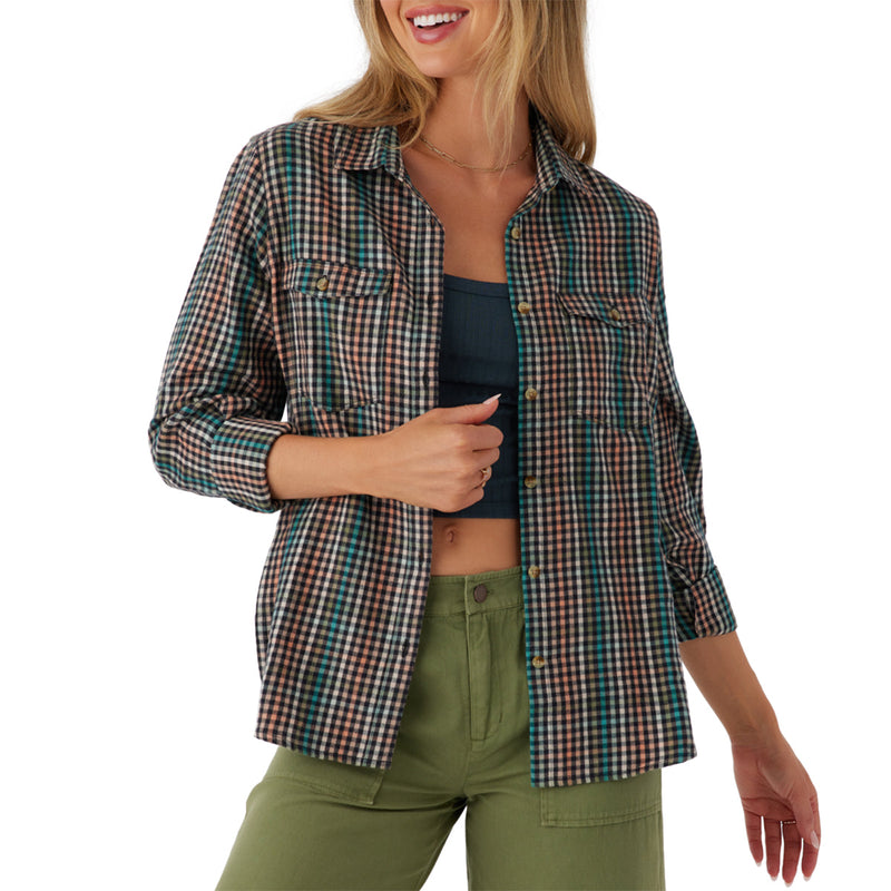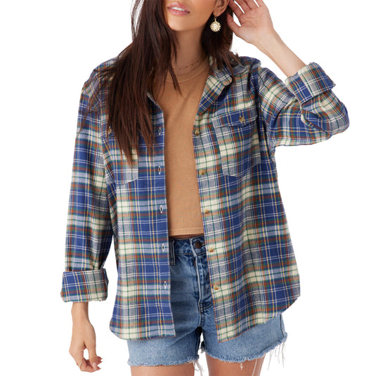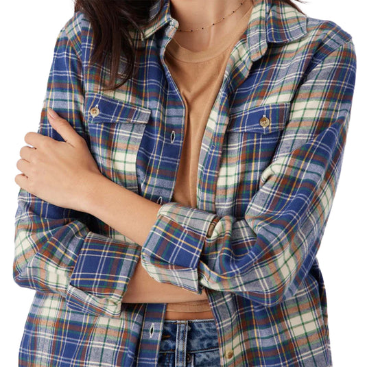 The O'Neill Women's Nash Long Sleeve Button-Up Flannel Shirt is an always classic flannel shirt that has a front button design, allover plaid print and super soft feel.