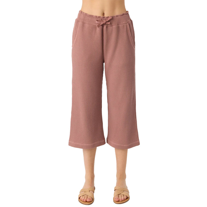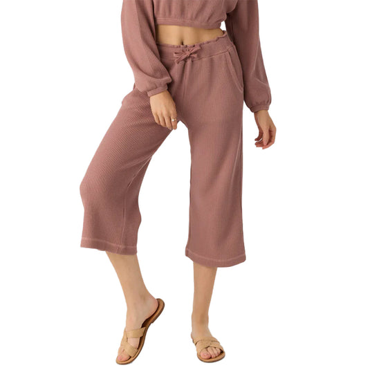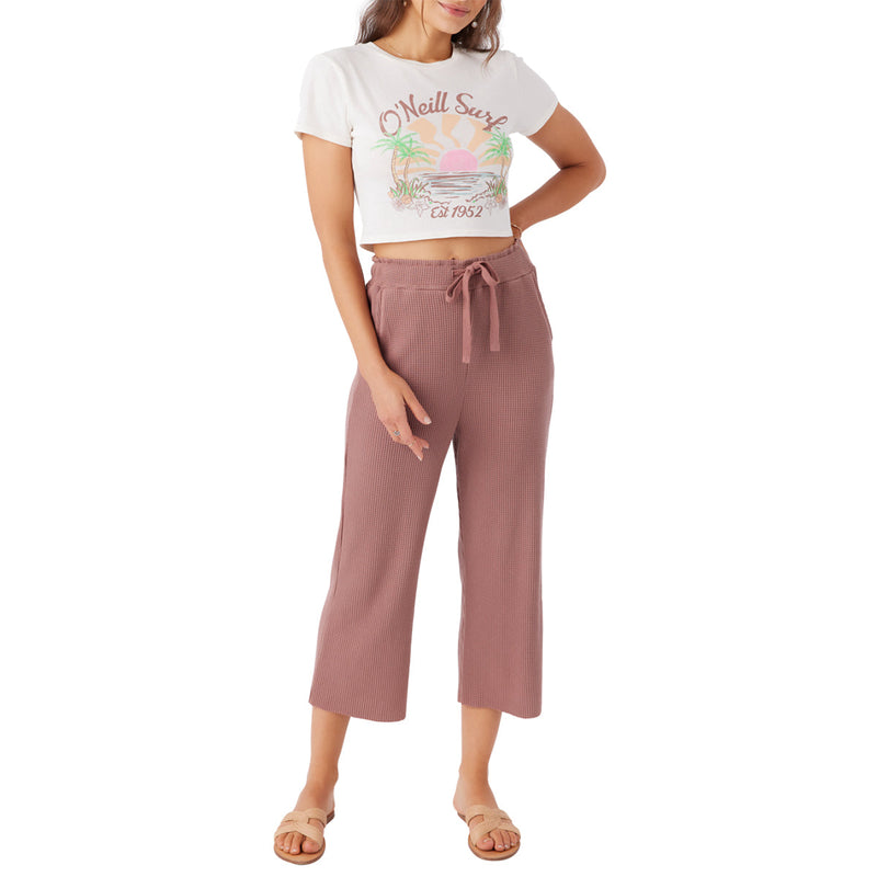 The O'Neill Women's Tour Lounge Pants are a laid-back knit sweatpant that has a comfortable knit waffle feel, wide leg fit and solid color wash.