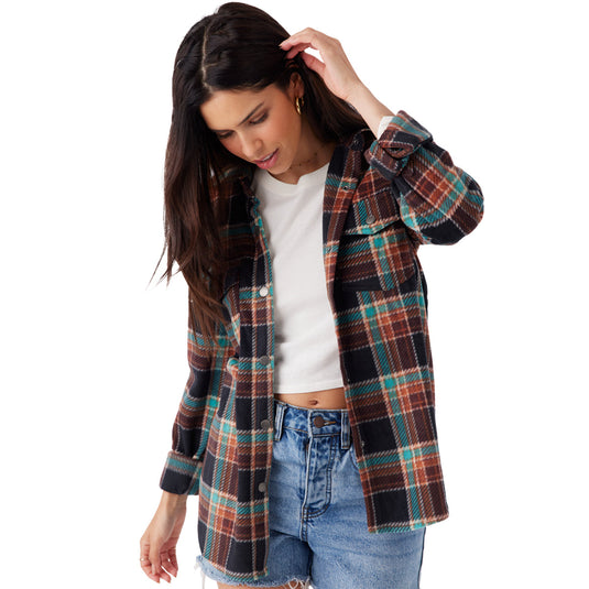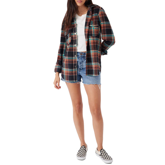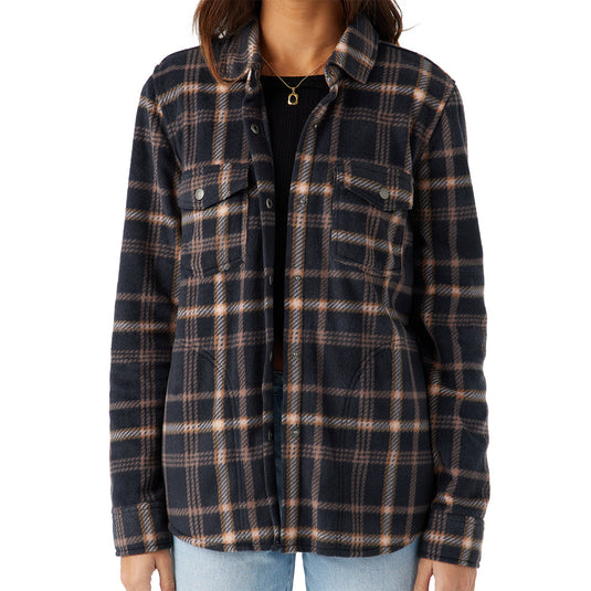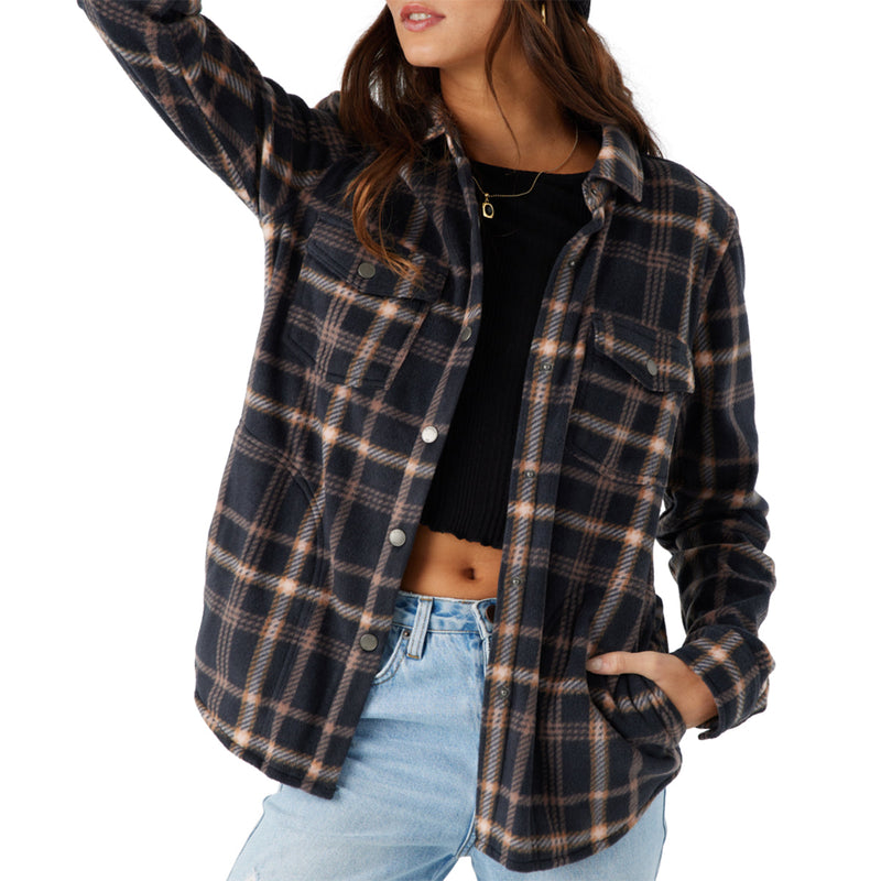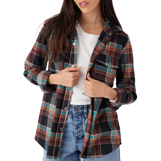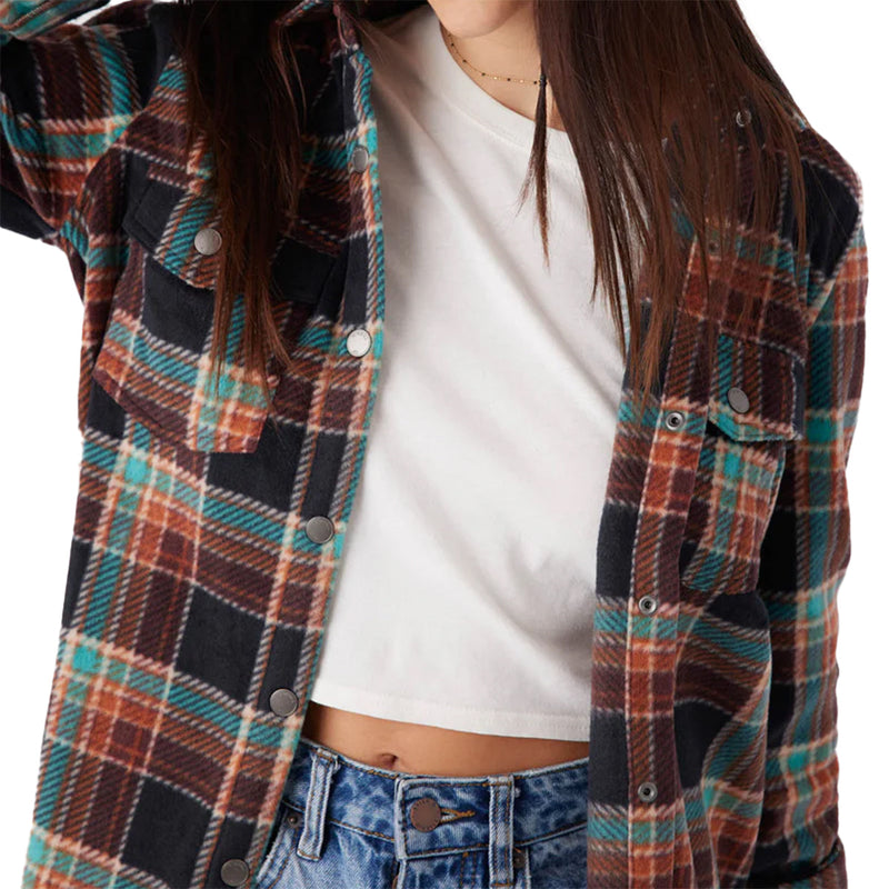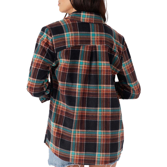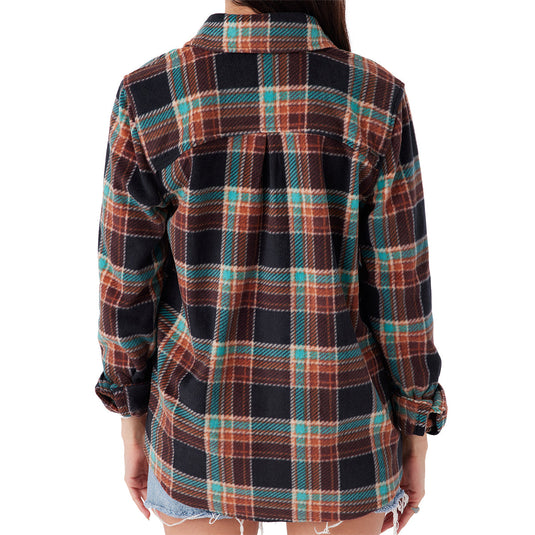 O'Neill's best-selling soft and cozy Women's Zuma Superfleece Long Sleeve Button-Up Shirt features a classic plaid print and snap closure.