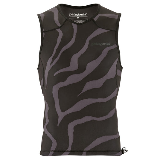 Patagonia has reformulated the Yulex material in their spring suits, making them lighter, stretchier and more comfortable. Made of 85% natural rubber/15% synthetic rubber by polymer content that replaces a petroleum-based material with a plant-based one, they offer the same performance attributes as conventional stretch neoprene while reducing CO2 emissions by up to ~80% in the manufacturing process. Derived from sources that are Forest Stewardship Council certified by the Rainforest Alliance, natural rubber has been blended with chlorine-free synthetic rubber to increase ozone- and UV-resistance and meets very rigorous standards for strength and durability. Providing supplemental warmth and sun protection for warm-water surfing, this vest is 1.5mm thick, with a stretchy and fast-drying 100% recycled polyester interior lining; the exterior face fabric is made of durable, water-resistant 88% recycled polyester/12% spandex. The face fabric and lining are now solution dyed—using 86% less water than conventional dyeing—and are laminated with water-based AquaA glue that’s free from harmful volatile organic compounds (VOCs). A streamlined anatomical design holds close to the body for maximum comfort and flex; other features include a rubberized waist gasket and an adjustable waist and cord lock to help keep the vest in place. Seams are sewn with flatlock construction for next-to-skin comfort and durability. Made in a Fair Trade Certified facility. Suggested water temperatures: 65–75° F/18–23° C.