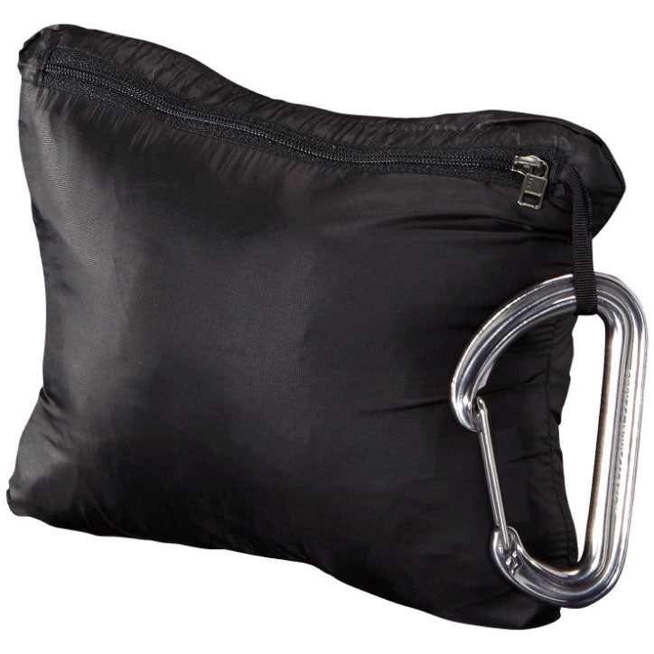 Two zippered handwarmer pockets have cleanly finished zipper garages; internal zippered chest pocket doubles as a stuffsack with a reinforced carabiner clip-in loop.