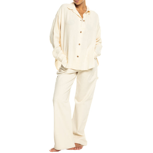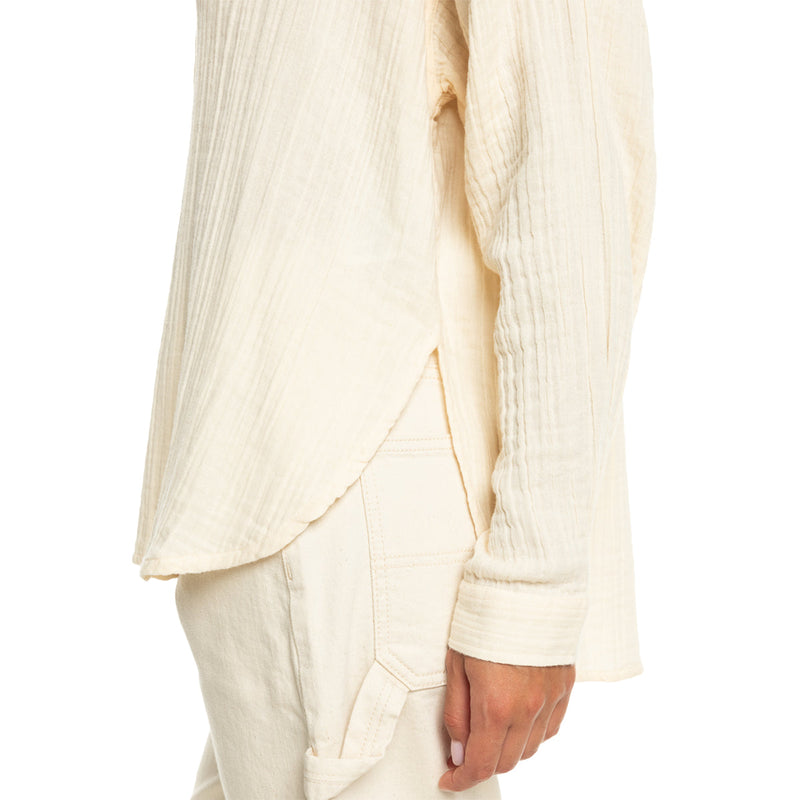 Get ready to start your day with the Roxy Women's Morning Time Long Sleeve Button-Up Shirt. Made from 100% organic cotton, this oversized long sleeve shirt features dropped shoulders, large side vents and recycled tortoise buttons.