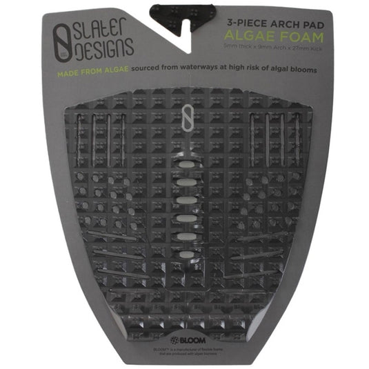 Help improve the quality in waterways by using the Slater Design 3 Piece Traction. In keeping with Kelly’s commitment to sustainability, this 3 Piece Traction is the most eco-friendly pad on the market today. Made from a collaboration with BLOOM foam, this pad has been processed using algae biomass that has been harvested from freshwater sources throughout the world reducing the suffocating algae and recirculating fresh water back into the environment. Along with supporting the eco-system, you will also improve your ride thanks to the grippy square pegs to increase speed and drive through every turn.