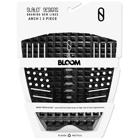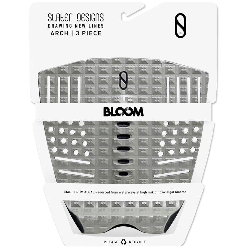 Help improve the quality in waterways by using the Slater Design 3 Piece Traction. In keeping with Kelly’s commitment to sustainability, this 3 Piece Traction is the most eco-friendly pad on the market today. Made from a collaboration with BLOOM foam, this pad has been processed using algae biomass that has been harvested from freshwater sources throughout the world reducing the suffocating algae and recirculating fresh water back into the environment. Along with supporting the eco-system, you will also improve your ride thanks to the grippy square pegs to increase speed and drive through every turn.