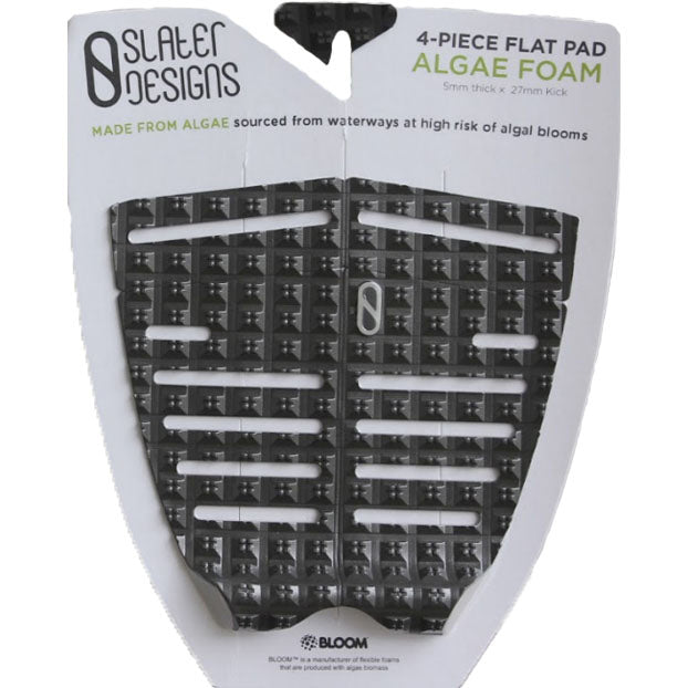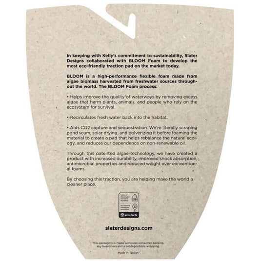 Help make the world a cleaner place while getting top level performance with the Slater Design 4 Piece Traction. In keeping with Kelly’s commitment to sustainability, this 4 Piece Traction is the most eco-friendly traction pad on the market today. This traction pad is made from algae biomass harvested from freshwater sources throughout the world, and was designed for surfers looking for a more direct connection to their board, with the flat surface mimicking your front foot sensation. Cutout strips provide a closer connection to the board while the square traction grooves provide unparalleled grip, allowing the rider to power through turns and land those difficult maneuvers.