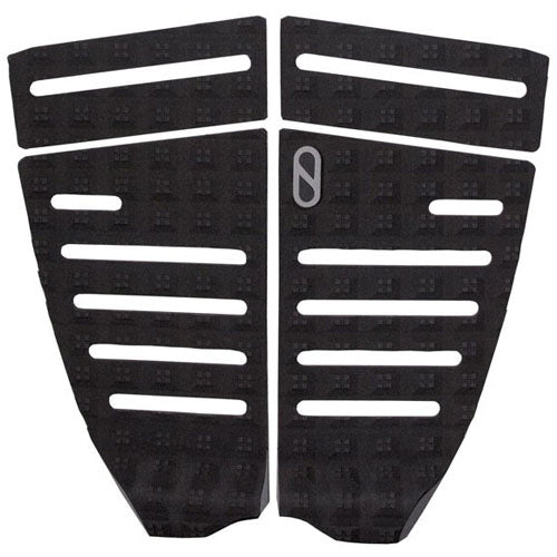 The Slater Designs 4-Piece Flat Traction Pad was designed for surfer's looking for a more direct connection to their board, with the flat surface matching what your front foot's feeling. Cutout strips provide a closer connection to the board while the square traction tread provides unparalleled grip, allowing you to power through turns and stomp landings.