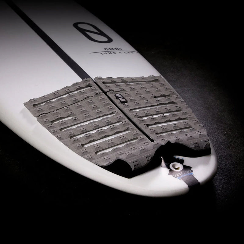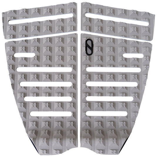 The Slater Designs 4-Piece Flat Traction Pad was designed for surfer's looking for a more direct connection to their board, with the flat surface matching what your front foot's feeling. Cutout strips provide a closer connection to the board while the square traction tread provides unparalleled grip, allowing you to power through turns and stomp landings.