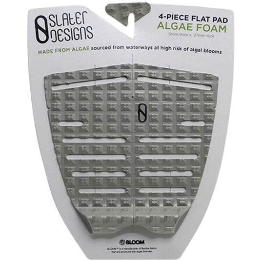 Help make the world a cleaner place while getting top level performance with the Slater Design 4 Piece Traction. In keeping with Kelly’s commitment to sustainability, this 4 Piece Traction is the most eco-friendly traction pad on the market today. This traction pad is made from algae biomass harvested from freshwater sources throughout the world, and was designed for surfers looking for a more direct connection to their board, with the flat surface mimicking your front foot sensation. Cutout strips provide a closer connection to the board while the square traction grooves provide unparalleled grip, allowing the rider to power through turns and land those difficult maneuvers.