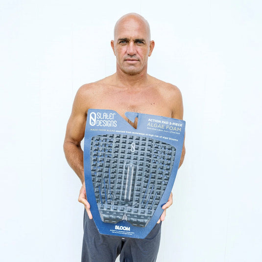 Kelly's pad of choice (and named after his dog). The Slater Designs 5 Piece Action Traction Pad is Kelly’s favorite arch, with functional design from Kelly directly. He chopped a ‘ V ‘ into the tail kick to prevent your leash from catching and slit the arch. The arch support is just as wide as on the 3 and 5 piece Slater Designs pads, but lower on this one. The square grooved edges on either side of the parallel slits give you a ‘hooked in’ feeling that other arch supports won’t, and the Action Pad also gives you options: a longer pad or a shorter pad, depending on how you chose to space the the side pieces from each other.