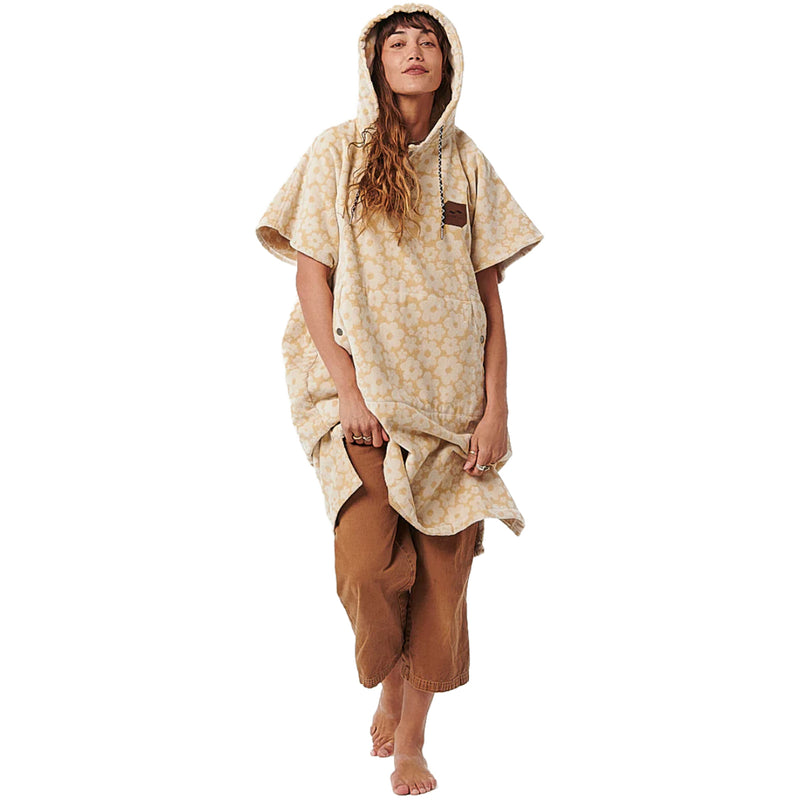 Unleash the versatility of our poncho with a hidden internal access opening for private changes in public, a convenient kangaroo pocket for storage, a double-layer woven hood for added warmth, and a snap front placket with drawcords for easy closure.