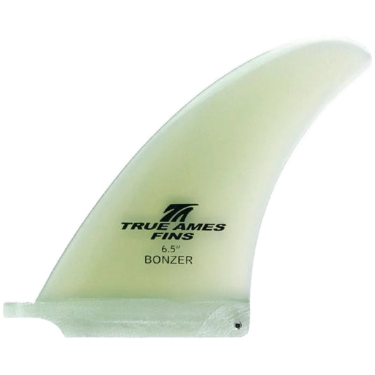 Paired with two or four runners, the True Ames Bonzer Fin is one of the best ways to efficiently organize water flow. This fin works in a synergetic fashion to maximize the use of the energy that is created by the water passing through the tail area of the board. When you're doing a turn, the water travels diagonally across the bottom of your board. This makes the rail-to-rail transition much easier, which in turn allows you to keep your board on the rail with much less effort.