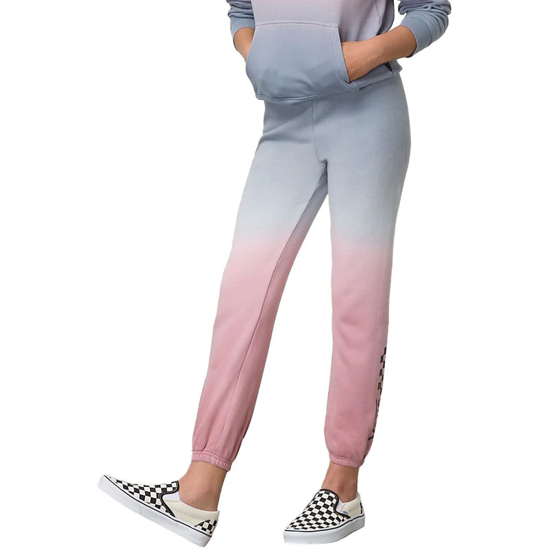 The Youth Sunset Wash Sweatpant is an 88% cotton, 12% polyester easy fit sweatpant with an ombre dip-dye, no side seams, and a comfortable elastic waist. A checkerboard logo screen print at the left leg enhances the iconic look.