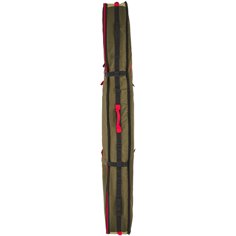 Developed with John John Florence, the JJF 3/2 Convertible Travel Board Bag protects 2 to 3 surfboards while hiding the third to reduce airline fees. Features include 3 padded board separation panels, front and rear compression straps, nose and tail end caps, internal heat shield, accessories pocket, rockered bag shape, reinforced skid plates, Multiband™ grab points, 10mm top and 20mm side/bottom padding, removable shoulder strap, and 6" carabiner hookup.