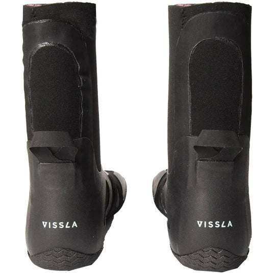 Vissla Seven Seas 7mm Round Toe Boots are made with everything you need and nothing you don't. True to the Vissla premise of less is more these wetsuit booties are designed to get you into the coldest of waters and keep you there so you don't miss a set. Made with 100% Super Stretch neoprene that is lightweight, warm, soft and easy to pull on and off. Lined with Thermal Brain Fuzz hallow fiber to insulate your feet heat and dry fast between morning dawn patrols. The soft grip sole design lends to excellent board feel and the strapless compression panels keep the boots snug to your feet, eliminating the restrictive velcro strap. The Vissla Seven Seas booties are glued and blind stitched to keep water out so you'll get hungry before you get cold. These boots, like the rest of the Vissla wetsuit line, were made using eco-friendly neoprene: naturally sourced Limestone and dope dyed yarns.