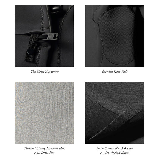 Vissla's super stretch Neo 2.0 tape at crotch, knees, and stress points allows for maximum seam sealing without compromising stretch and comfort.