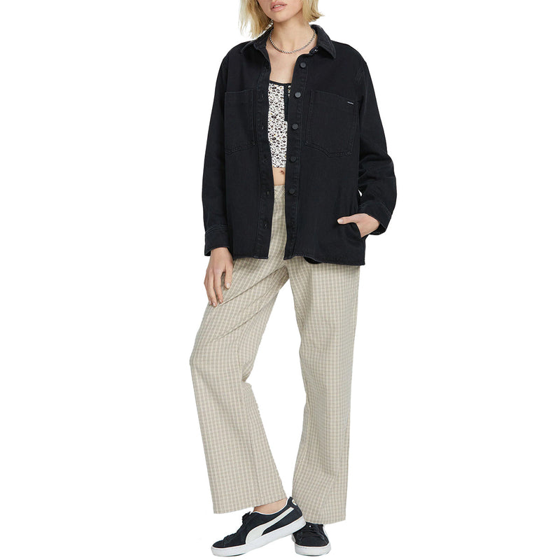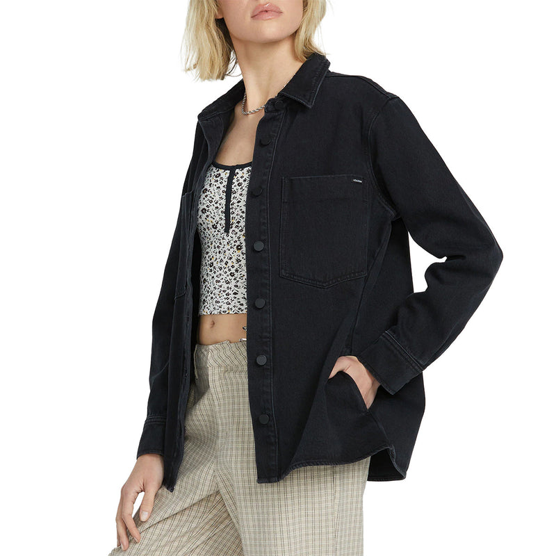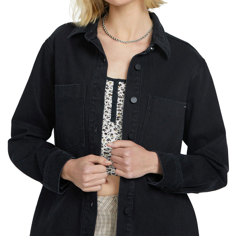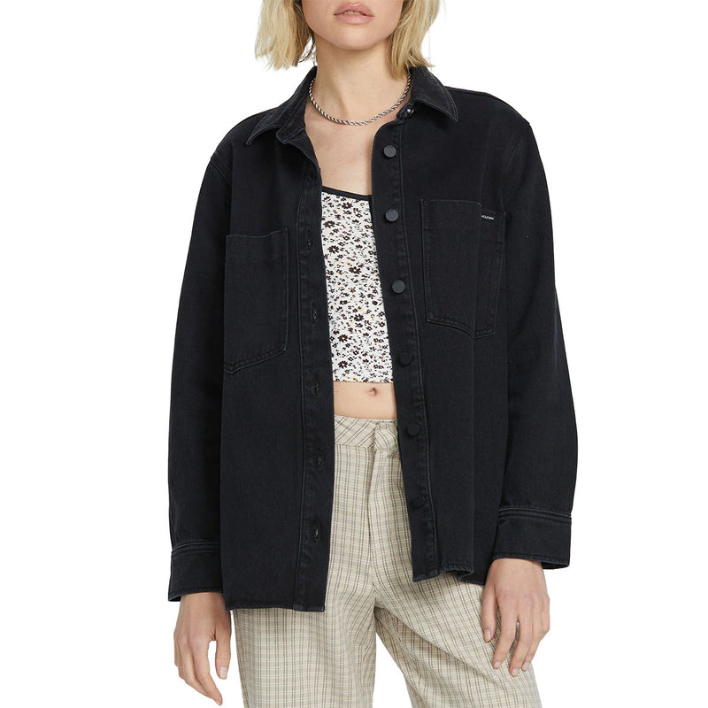 Oversized and unapologetic, the Volcom Women's Chill Trap 2 Denim Jacket is a statement piece. An oversize shacked crafted from 100% cotton denim with large chest pockets and dropped back yoke details.